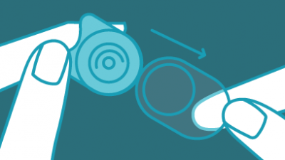 Using both hands, carefully peel off the clear paper applicator from the protective teal coloured cover.